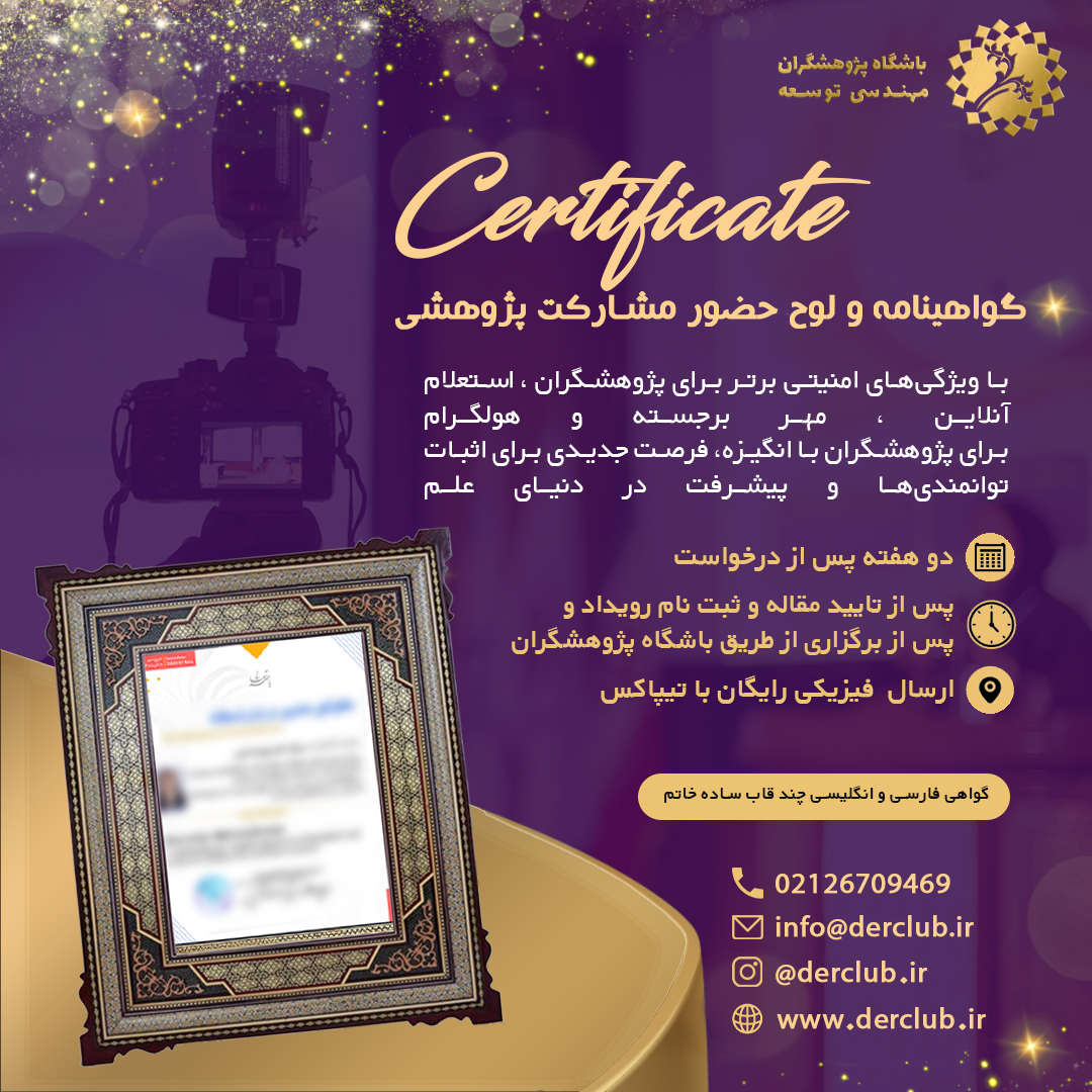 گواهینامه و لوح حضور پژوهشی با امنیت و اعتبار بالا دریافت کنید.