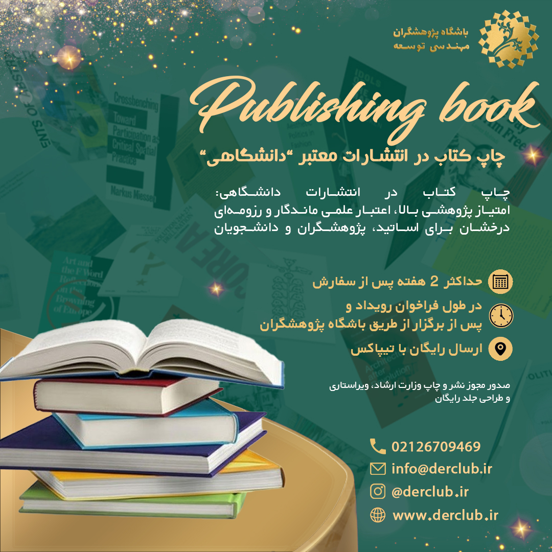 چاپ کتاب علمی شما راهی منحصربهفرد برای تبدیل تحقیقات به منبعی معتبر و ارائه به جهان علم است. این خدمات شامل چاپ در ناشران بینالمللی و حتی امکان انتشار در آمازون با استانداردهای جهانی است.